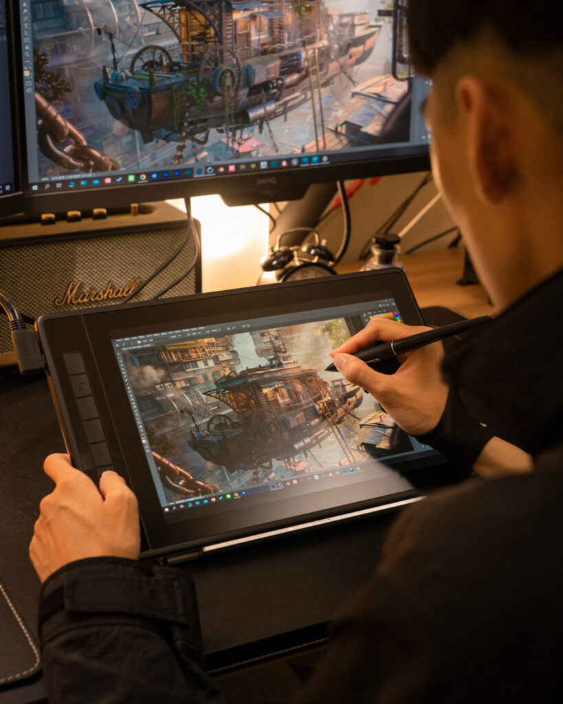 InfomationThis project was completed using the Kamvas 13 Pro. The artwork tells a story through 3D software rendering, combined with a HUION drawing tablet. A fleet arrives at a new destination, and the drifting travelers converse with people they've never met before, visiting unfamiliar places. Here, they make new friends. You don't need to know their names, and perhaps you'll never meet them again. Throughout the journey, this cycle keeps repeating—meeting, becoming acquainted, and then turning into strangers once more.
